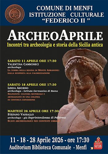 Al via la terza edizione di ArcheoAprile, la fortunata rassegna sull’archeologia siciliana organizzata dall’Istituzione Culturale “Federico II” di Menfi, che vede un ciclo di incontri tra archeologia e storia della Sicilia antica, con la partecipazione di prestigiosi studiosi che illustreranno e relazioneranno sulle ultime scoperte fatte nei fruttuosi siti archeologici di Sicilia.