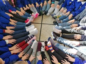 Indossando semplicemente dei calzini spaiati essi infatti hanno vissuto in prima persona la propria unicità, ne hanno compreso l’importanza e la necessità di rispettarla, evitando pericolose omologazioni che inevitabilmente sfociano in atti di bullismo. Agli alunni più grandi invece i Docenti hanno proposto di portare un calzino spaiato, di apporre il proprio nome, di appenderlo ad un filo e mettervi dentro un messaggio, un disegno, una frase, come simbolo di amicizia.
