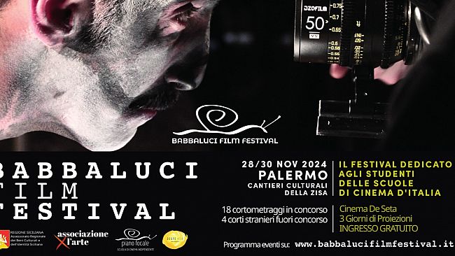 Una grande festa del Cinema voluta per promuovere lo scambio culturale e creativo tra studenti della settima arte, offrendo loro un contesto dove possano mettere in luce le proprie capacità e condividere le rispettive esperienze legate alla creazione cinematografica, rendendo omaggio al loro talento. E’ quella in programma dal 28 al 30 novembre a Palermo al Cinema Vittorio De Seta - Cantieri Culturali della Zisa - per la prima edizione del 'Babbaluci Film Festival', con la direzione artistica di Giuseppe Gigliorosso, della Scuola di Cinema indipendente Piano Focale – Eikona Film, e la direzione organizzativa di Giuseppe Messana, dell’Associazione per l'Arte: le due realtà culturali organizzano l’evento dedicato agli allievi delle scuole di cinema d'Italia in collaborazione con l'Associazione Zeste Hub, con il contributo dell’Assessorato Regionale dei Beni Culturali e dell’Identità Siciliana.