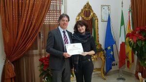 Il primo cittadino, stamattina, ha consegnato una pergamena agli artisti Alba D’Angelo, Rita Gentile, Ida Luppino e Ciccio Puccio “per il lustro conferito alla città di Campobello” «Esprimo le mie congratulazioni alla compagnia teatrale “Arte e Teatro” vincitrice del premio della critica come “miglior lavoro teatrale” alla prima edizione del Gran Galà del Teatro dialettale di Castelbuono. Con grande orgoglio, ho infatti appreso di questo successo che rende onore alla città di Campobello e che sancisce il talento di questa compagnia teatrale di cui fanno parte brillanti artisti campobellesi, che auspichiamo possano presto esibirsi anche sul palcoscenico del Nuovo Cine -Teatro Olimpia di imminente inaugurazione».