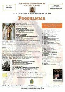 I festeggiamenti proseguiranno venerdì 27 settembre, alle ore 18, con la conferenza su “Il Crocifisso ligneo di fra Umile restaurato”, che si terrà all’interno della Chiesa Madre. L’incontro, che sarà moderato da Enza Luppino, vedrà gli interventi di don Nicola Patti, del sindaco Giuseppe Castiglione, del vescovo Domenico Mogavero, di Giuseppe Marino e di Donatella Vernaccini del Lions club “Fata Morgana”, di Bartolomeo Figuccio, della Soprintendenza ai Beni culturali di Trapani), di don Santo Scileppi, di Giovanni Isgrò di Gaetano Correnti e di Maurizio Vitella.