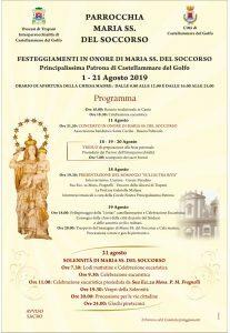 Il 20 agosto, alle ore 21,30, “Viaggio fra le note” di Antonio Stellino e Ileana Tamburello Lunedì 19 agosto la consegna delle chiavi della città alla Madonna, tradizionale processione a mare seguita dai pescatori e giochi pirotecnici. Il 20 agosto sfilata di carretti siciliani in centro e concerto gratuito di Daria Biancardi in piazzale stenditoio. Il 21 agosto gli uffici comunali rimarranno chiusi. Concerto fuori programma per i festeggiamenti della Patrona, Maria Santissima del Soccorso: il 2 agosto alle ore 21,30, al teatro Apollo Anton Rocco Guadagno, “Viaggio fra le note- omaggio ai più celebri compositori dal 1700 ad oggi”, concerto per violino e pianoforte di Antonio Stellino e Ileana Tamburello.
