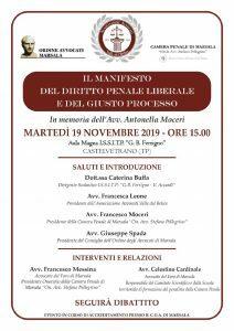Si terrà martedì 12 novembre alle ore 15.00, presso l’aula magna dell’ISSITP GB. Ferrigno il convegno in memoria della collega avvocatessa Antonella Moceri, insegnante di diritto al G.B. Ferrigno, scomparsa prematuramente qualche anno orsono. Gli organismi dell’avvocatura del Foro di Marsala organizzano un evento di confronto giuridico su un tema di grande attualità che attiene anche alla proposta Bonafede dell’abrogazione dell’istituto della prescrizione del reato dopo il processo di primo grado.