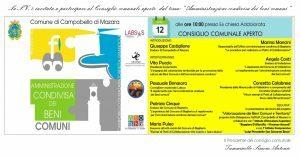 Il sindaco Giuseppe Castiglione e il presidente del Consiglio comunale Simone Tumminello invitano la cittadinanza a partecipare alla seduta del Consiglio comunale aperto, che si terrà venerdì 12 aprile, alle ore 10, nell’auditorium dell’ex chiesa dell’Addolorata sul tema dell’Amministrazione condivisa dei beni comuni. L’adunanza pubblica ha infatti l’obiettivo di illustrare alla cittadinanza i principi su cui si basa “L’Amministrazione condivisa”, in vista dell’adozione da parte del Comune di Campobello dell’apposito regolamento per la cura dei beni comuni.
