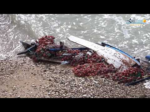La barca è appena affondata, disseminando in un lungo tratto di costa rifiuti seriamente inquinanti!