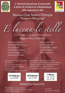 Durante tutti e 6 gli appuntamenti in programma (giovedì 27 e venerdì 28 febbraio, ore 21, domenica 1° marzo ore 17.30 e ore 21, nonché lunedì 2 e martedì 3 marzo ore 21), sarà portata in scena l’opera teatrale “E Lucean le stelle” per la regia di Piero Indelicato, regista e attore di Campobello, che annovera 35 anni di qualificata attività artistica in campo teatrale, essendo da anni impegnato in modo particolare nella promozione del teatro sociale per la lotta contro la mafia e contro ogni forma di sopruso e di violenza.