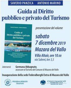 La Strada del Vino e dei Sapori di Mazara del Vallo in occasione della presentazione del libro “Guida al Diritto pubblico e privato del Turismo” di S. Panzica e A. Marino – che si terrà il 7 dicembre presso Villa Altair- Cantine Giglio, in Mazara del Vallo via Salemi km 3,5 - presenterà un progetto all’Amministrazione comunale per far ripartire il turismo nel breve termine a Mazara del Vallo. La Strada del Vino ha, pertanto, il piacere di invitarVi il 7 dicembre 2019 ore 10,00 presso Villa Altair/ Cantine Giglio, interverrà l’Assessore al Turismo Germana Abbagnato.