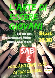 Week –end intenso per Il candidato Sindaco del Movimento 5 Stelle Enzo Alfano, coadiuvato dalla squadra di assessori designati e di consiglieri, che promuoverà oggi pomeriggio alle ore 17:30 l’incontro “L’arte di essere giovani” con i giovani di Castelvetrano, presso il Sistema delle Piazze. Si tratta di una estemporanea d’arte in tutte le sue forme, street art, performance video, musica e tutto ciò che è espressione della gioventù, che un giorno sarà linfa vitale della nuova Castelvetrano.