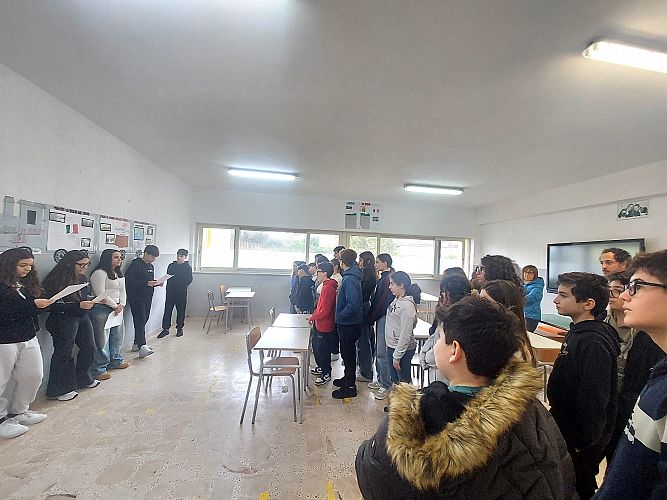 Parallelamente, tutte le classi terze del plesso Pappalardo hanno condotto un lavoro di ricerca sui testi di storia, integrato da ricerche su testimonianze dirette e immagini dell'epoca. I docenti hanno curato approfondimenti specifici attraverso la visione di video e documenti d'archivio, gettando le basi per una comprensione consapevole di queste vicende. Questo percorso di studio è culminato in un momento di riflessione e condivisione.