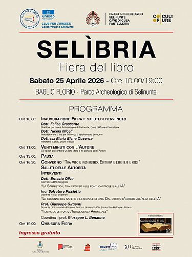 I libri e le case editrici siciliane sbarcano tra gli antichi templi. Nella giornata del 25 aprile, a ingresso gratuito nei siti della cultura, il Parco archeologico di Selinunte ospita per la prima volta “SELÌBRIA”, fiera del libro organizzata dal Club per l’UNESCO di Castelvetrano Selinunte, in occasione della Giornata mondiale del libro e del diritto d’autore.