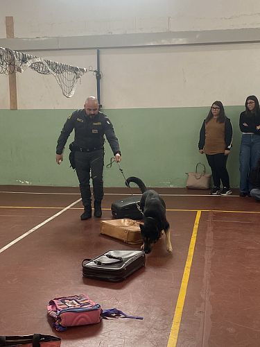 Al termine dell’incontro, gli alunni si sono spostati in palestra per assistere alla dimostrazione dell’unità cinofila della Guardia di Finanza.