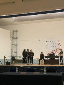 Infine una marcia tutta femminile ha attraversato l’aula magna e ogni passo cadenzato batteva sul silenzio come il ritmo dei cuori di coloro che hanno sperato di non essersi spenti invano, perché il loro sacrificio sia di monito a tutti, perché l’”ALTRO” sia un hospes e mai più un hostis. Non deve esserci UNA giornata della memoria, ma il dovere della conoscenza, della cooperazione e dell’amore per l’altro e con l’altro, la memoria siamo noi, ogni giorno! L’Arte mette a nudo l’animo umano, essa ha il dovere della parresia.