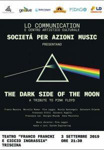 The dark side of The Moon, l’intero album discografico più osannato di tutti i tempi, sarà interpretato dalla SpA Music martedì giorno 3 settembre alle ore 21:30 al teatro di Triscina con una formazione forte di ben dieci musicisti e la preziosa collaborazione di effetto scenico e fonico della System Engeenering, per una performance che promette una manifestazione degna del teatro comunale all’aperto inaugurato qualche anno fa dalla stessa SpA Music e che adesso è ritornato a nuova vita per tutti i castelvetranesi.