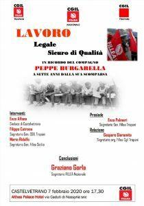 Lavoro legale, sicuro e di qualità”. E’ il tema dell’incontro che la Fillea Cgil di Trapani terrà, venerdì, per commemorare Giuseppe Burgarella, sindacalista scomparso sette anni fa. All’iniziativa, che si terrà alle 17,30 all’Althea Palace Hotel, in via Caduti di Nassyria a Castelvetrano, prenderà parte Gaetano Gorla, della segreteria della Fillea Nazionale.