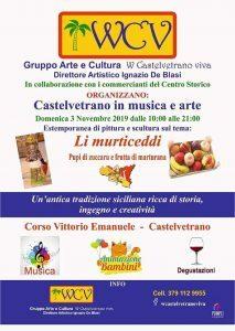 Il maestro Ignazio De Blasi, direttore artistico della rassegna WCastelvetrano viva in collaborazione con i commercianti del centro storico organizza per domenica 3 novembre dalle 16.00 in poi Castelvetrano in musica e arte. La mostra vivrà un’estemporanea sul tema: "Li murticeddi Pupi di zuccaru e frutta di marturana" nel Corso Vittorio Emanuele, un’antica tradizione siciliana fatta di storia, ingegno e creatività.