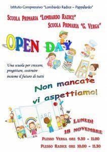 L'I.C. "Lombardo Radice - Pappalardo", considerata la chiusura della scuola in data 11 novembre per Ordinanza Sindacale a causa di allerta meteo, comunica che l’Open day della Scuola Primaria verrà effettuato in data 18 novembre p.v. con il seguente orario: