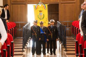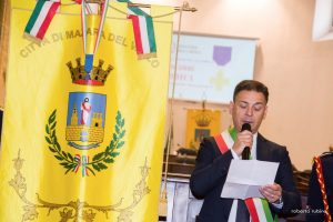 Il Gonfalone della Città di Mazara del Vallo, con la croce al valor militare conferita , è stato portato dai Vigili Urbani in alta uniforme coordinati dal Comandante Salvatore Coppolino e salutato da marce militari e dall’esecuzione del “Silenzio” in memoria dei caduti.