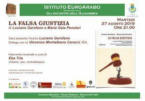Nell’ambito della rassegna organizzata dall’Istituto Euroarabo, con il patrocinio dell’amministrazione civica, in collaborazione con gli Amici della Musica e le Associazioni Alchimie, Rotary, Fildis, Fidapa e Strada del vino e dei sapori Val di Mazara, nonché l’Ordine degli avvocati, martedì 27 agosto alle 21.00, sulla terrazza dell’Alhambra, sarà presentato il libro di Luciano Garofano e Maria Gaia Pensieri dal titolo La falsa giustizia. Il volume, anche attraverso lo studio di delitti famosi, affronta il problema degli errori giudiziari, le anomalie e i difetti nelle procedure d’indagine che provocano sentenze spesso discutibili.