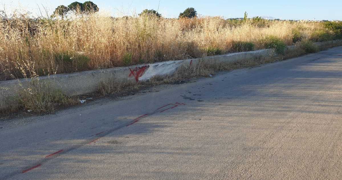 nelle foto i segni della lunga frenata e dell'impatto sul cordolo di cemento