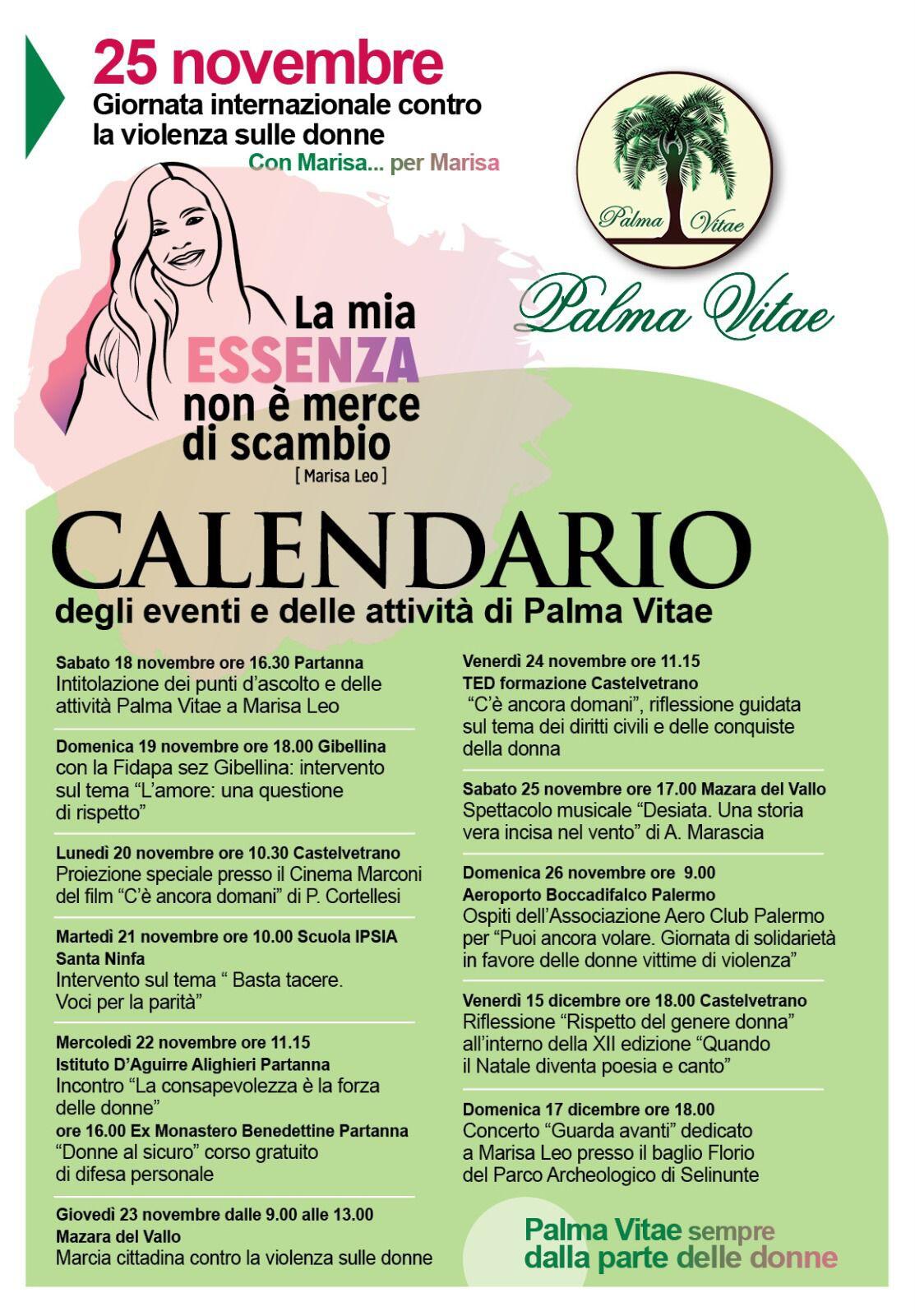 Un calendario fitto di appuntamenti che interesserà più comuni e che si concluderà con un concerto, il 17 dicembre, presso il Baglio Florio del Parco Archeologico di Selinunte, dedicato sempre a Marisa. La presidente dell’associazione Giusy Agueli, durante la presentazione del programma, ha spiegato come Palma Vitae continuerà il proprio impegno associativo per onorare la figura di Marisa, di cui raccoglie l’eredità per un’azione più forte e incisiva per creare un cambiamento culturale, urgente e necessario per la dignità e la libertà delle donne. Una riflessione toccante e un pensiero pure per Giulia, ennesima giovane vittima, che sottolinea più che mai il fondamentale lavoro da realizzare nelle scuole con i giovani.