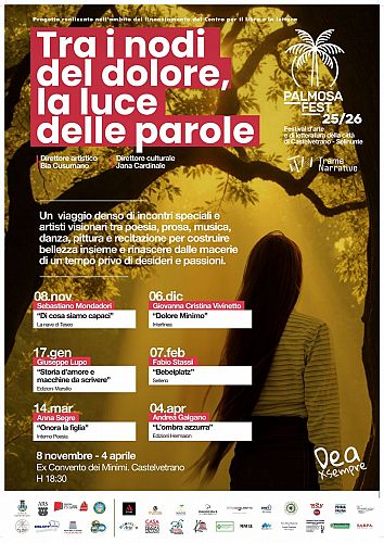 «Libri importanti, di narratori e poeti importanti», come ha sottolineato Jana Cardinale, confermata alla direzione culturale della rassegna. Organizzazione congiunta La quarta edizione della kermesse, che fa parte della Rete dei festival letterari del trapanese, è organizzata congiuntamente dall’associazione «PalmosaKore» e dal Comune di Castelvetrano, che sostiene la rassegna grazie al finanziamento del Centro per il libro e la lettura (un ramo del Ministero della Cultura), ottenuto nell’ambito del bando «Città che legge».