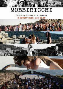 Torna in scena oggi 6 agosto, nell'imponente atrio del Castello Grifeo di Partanna, per la Rassegna Artimusicultura, dopo il sold out a Teatro Andromeda di Santo Stefano di Quisquina, l'opera scritta e diretta da Giacomo Bonagiuso, MOBBIDICCHI. Il testo, liberamente ispirato alla storia di Melville, descrive un viaggio all'interno della malvagità umana. L'ingresso sarà libero fino ad esaurimento dei posti disponibili. Da più di un secolo e mezzo uno spettro si aggira nelle acque extraterritoriali della letteratura: "Moby Dick".