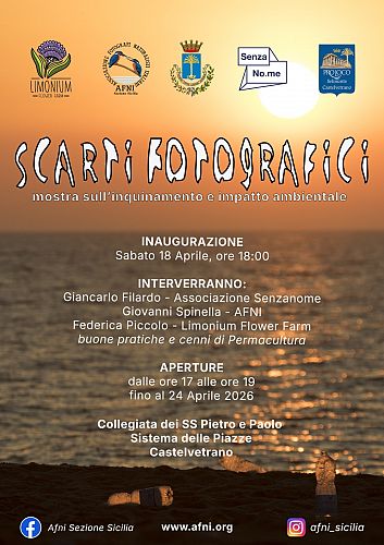 Sabato 18 aprile 2026, alle ore 18:00, presso la Collegiata dei SS Pietro e Paolo nel Sistema delle Piazze di Castelvetrano, sarà inaugurata "Scarti Fotografici", mostra fotografica dedicata al tema dell'inquinamento e dell'impatto ambientale, promossa dalla sezione siciliana dell'AFNI (Associazione Fotografi Naturalisti Italiani).