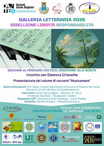 Dopo il significativo riscontro di critica e pubblico registrato in occasione dell’inaugurazione con Salvatore Ferlita, che il 5 febbraio scorso ha inaugurato la Galleria Letteraria 2026, dedicata quest'anno al tema "Ribellione, libertà, responsabilità", con un’analisi inedita della Sicilia letteraria a partire dalle sue ultime pubblicazioni saggistiche, "Pirandello di sbieco" e "Agrigento di carta", la rassegna culturale curata da Rosario M. Atria e Giuseppe I. Undari, prosegue mercoledì 12 febbraio, alle ore 18.00, con un secondo appuntamento di grande interesse, presso la Chiesa di San Domenico a Castelvetrano.