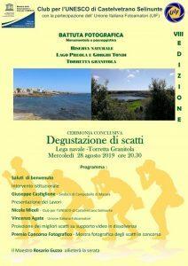 Mercoledì 28 agosto, alle ore 21.00, nella piazza del magnifico scrigno di Torretta Granitola , si terrà la cerimonia conclusiva della 8ᵃ edizione della “Battuta fotografica” monumentale e paesaggistica denominata “Degustazione di scatti”. La Battuta Fotografica, che quest’anno è stata dedicata alla riserva naturale di lago Preola e Gorghi tondi e al borgo marinaro di Torretta Granitola, si è svolta con successo il 02 giugno scorso. La “Battuta Fotografica”, realizzata in collaborazione con l’UIF (Unione Italiana Fotoamatori), ha lo scopo, attraverso il genio fotografico dei fotoamatori, di far conoscere elementi peculiari, Monumentali e Paesaggistici, caratterizzanti il nostro territorio al fine di promozionarlo e valorizzarlo nei suoi aspetti più reconditi.