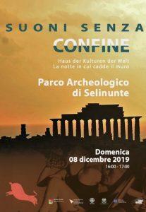 SUONI SENZA CONFINE Domenica 8 dicembre, dalle ore 16 alle ore 17, al tramonto, in una zona del Parco che diviene luogo di performance artistica mutuando una vocazione naturale, nel paesaggio architettonico e monumentale, si svolgerà Suoni senza confine - Haus der Kulturen der Welt ovvero La notte in cui cadde il muro, un progetto di Curva minore - associazione per la musica contemporanea, ideazione e drammaturgia di Lelio Giannetto, su musiche di J.S.