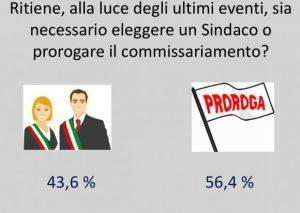 Ancora più stridente la percentuale di chi preferirebbe una proroga del commissariamento, impossibile per legge, addirittura il 56,4, piuttosto che un sindaco regolarmente eletto dal popolo che solo il 43% dei votanti vorrebbe, a riprova del livello di delusione che molti politici hanno ingenerato nella comunità castelvetranese.